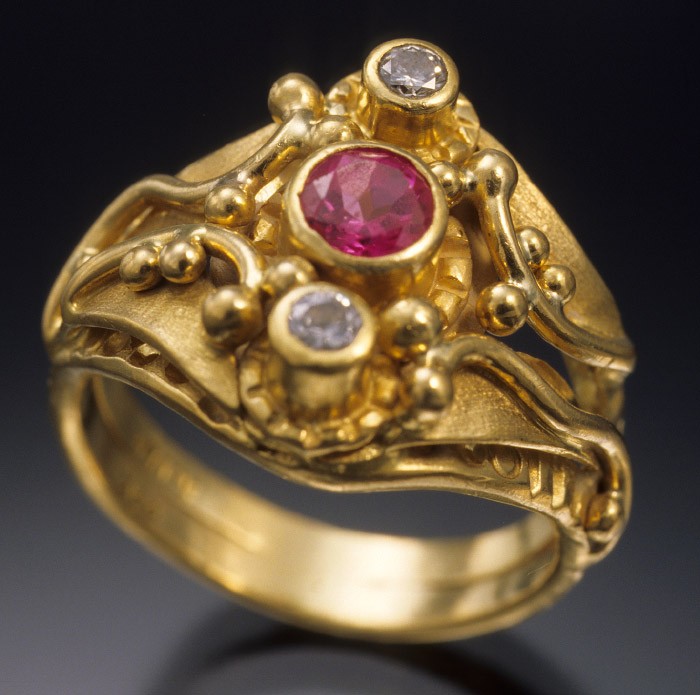 Ring - Pink sapphire and .20ct diamonds - 22kt. R22-6